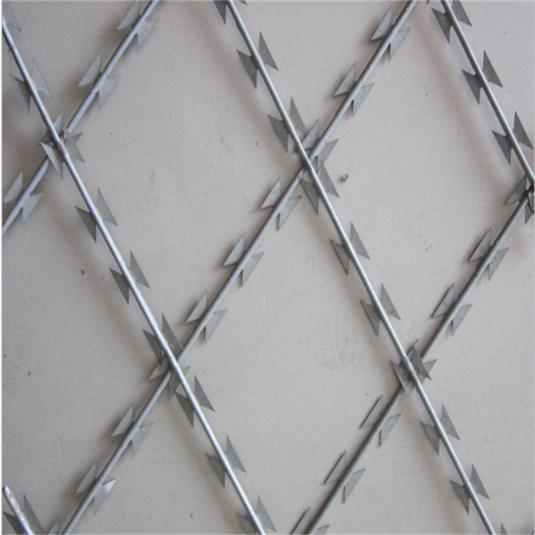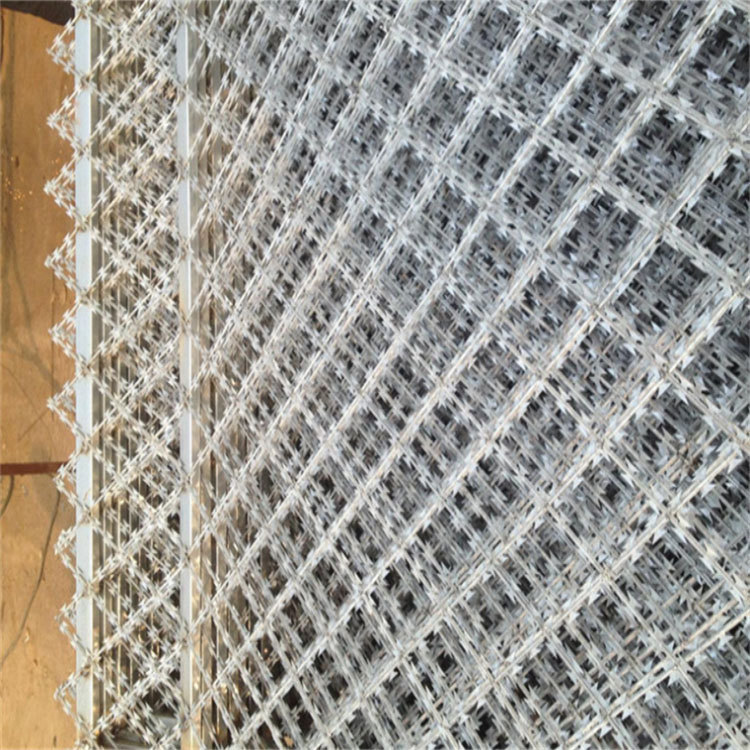 其材质选用高强度钢板与镀锌钢丝,经精密焊接、整体镀锌处理,不仅刀片锋利度高、穿透力强,还具备优异的抗腐蚀性能,可在户外恶劣环境下长期使用。与传统的刺绳相比,焊接刀片刺网结构更牢固,不易松散、断裂,且安装时无需复杂的拉紧装置,可直接固定在立柱或围网上,施工效率更高。此外,它的刀片密度可根据防护需求调整,密度越高,防护等级越强,能针对不同场景形成差异化的安全防护,为高安全需求场所构建一道难以突破的“物理屏障”。