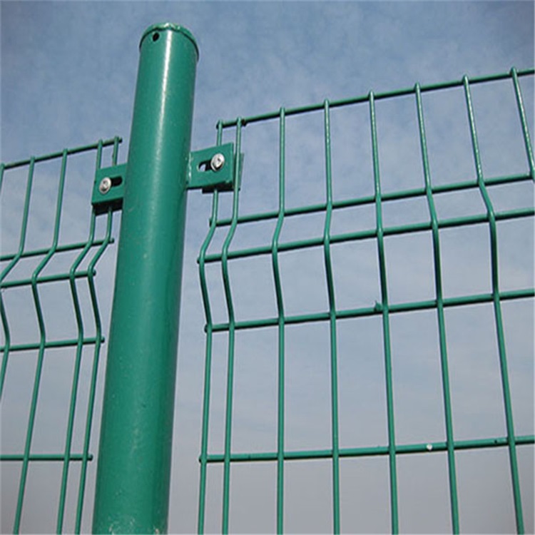 立中间立柱并整体调平:在网片绷直的状态下,依次竖起中间立柱,使其紧贴网片,然后进行垂直校正和固定。此时,应从一端整体观察网片是否在一条直线上。
