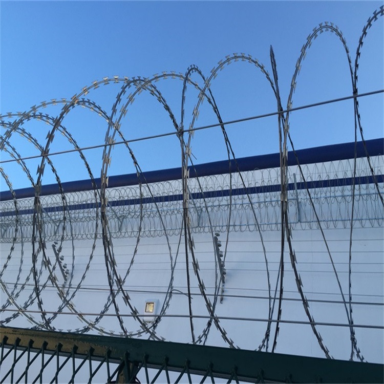 为了适应不同的使用环境,蛇腹型刀刺网在选材和工艺上也展现出多样性。常见的芯线材料有镀锌钢丝和不锈钢丝,刀片材料则包括热镀锌钢板和不锈钢薄板。在沿海或工业污染区等腐蚀性较强的环境中,还可以选用防腐性能更优的316L不锈钢材质,或在表面增加浸塑、喷涂等复合防腐处理,以延长产品的使用年限。这种灵活性使得蛇腹型刀刺网除了应用于高警戒场所,也能用于工厂围墙、小区边界等民用安防领域,成为守护安全的通用选择。