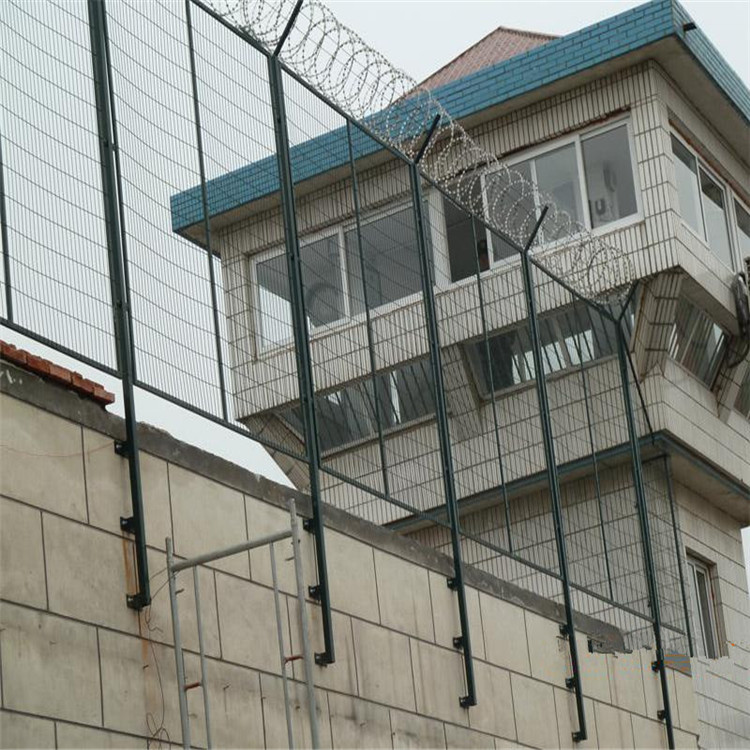 2.表面处理方式,带刺钢网墙的表面处理有涂塑和镀锌。其中涂塑方式有两种,喷塑和浸塑,区别是喷塑的塑层较浸塑的涂塑层要薄。镀锌的方式也是有两种,电镀锌和热镀锌,热镀锌的处理方式要比电镀锌上锌量大,防腐蚀效果也要好。像监狱这种高安全场所采用先镀锌后浸塑的防腐处理方式,可以有效延长使用年限。