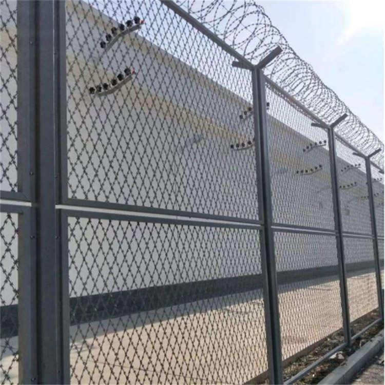 - 边框型钢网墙:这是监狱巡逻道钢网墙常见的样式,由网片、边框和立柱组成。网片通常采用钢丝焊接而成,网孔有正方形、长方形等,边框一般为矩形管,焊接在网片四周以增加牢固度,立柱多为方管或圆管,顶部可安装V型支架。