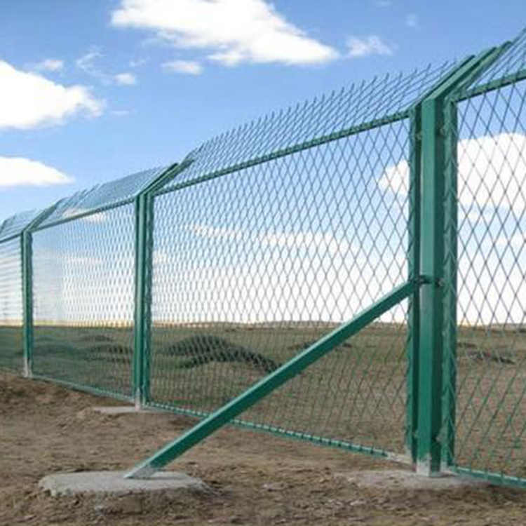 栅栏网面多选用菱形或矩形网格设计,网格尺寸经过专门计算,在实现视野通透的同时,能有效阻挡人员穿越。部分设计会在网面中段设置横向加强构件,形成连续阻隔带。支撑系统采用深埋地下的稳固立柱,并通过混凝土基础固定,确保结构整体稳定。