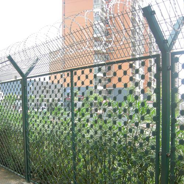 采用梅花形排列的刺片与钢网结合,形成立体防护屏障,有效增强防攀爬能力。材质坚固耐用